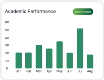 Track student progress with real-time analytics and reports that include attendance, fees, academic performance, and activities.